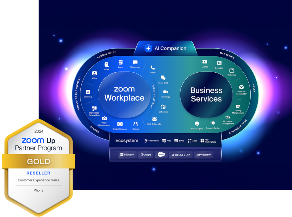 CANCOM ist zertifizierter Zoom-Goldpartner und hat sich neben den klassischen Themen wie Zoom Meeting und Zoom Chat auch auf die Spezialisierung in den Bereichen Zoom Phone, Zoom Rooms und Zoom Contact Center fokussiert.